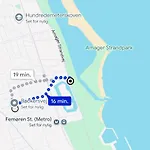 El apartamento se encuentra en el barrio Amager Øst de Copenhague, al lado de la estación de metro Femøren. Este apartamento está a unos 4 km del Centro de Copenhague en Copenhague. El apartamento Taet Ved Strand, Metro Og Lufthavnen está a unos 10 minutos en coche de la Iglesia de San Salvador.